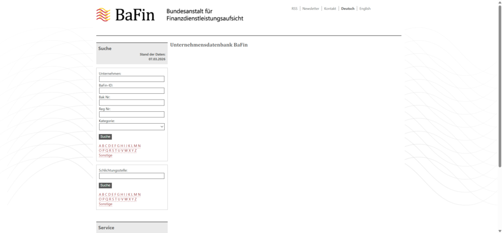 通过 BaFin 官方数据库,投资者可以查询金融机构的 授权状态、牌照信息以及业务范围