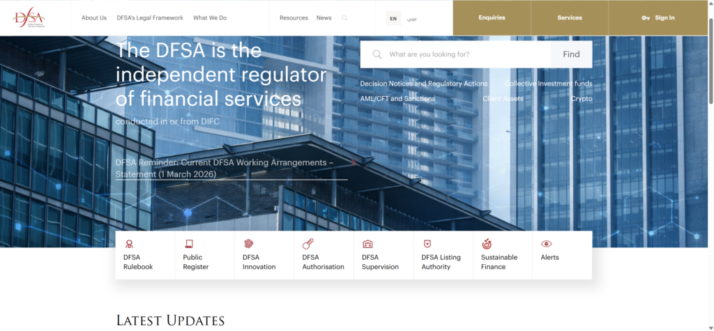 DFSA(Dubai Financial Services Authority) 是迪拜国际金融中心(DIFC)的独立金融监管机构,成立于 2004 年。