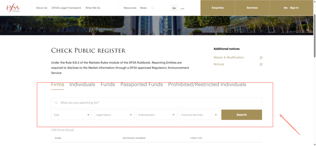 在进行金融投资合作前,建议优先通过 DFSA Public Register 官方系统核实企业监管信息,以确保交易安全与合规。