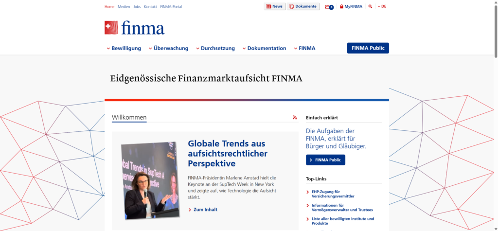 FINMA 是瑞士金融市场的主要监管机构,负责监管 银行、证券公司、基金管理机构及资产管理公司。通过 FINMA 官方系统,用户可以核实金融机构的注册信息、授权状态及监管范围。