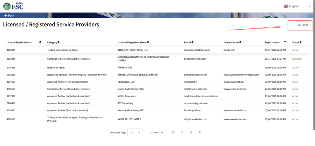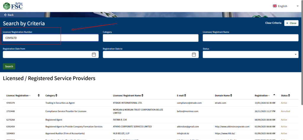 通过 IFSC 官方数据库,投资者可以查询企业的金融服务牌照信息,并验证企业是否获得伯利兹监管机构授权。