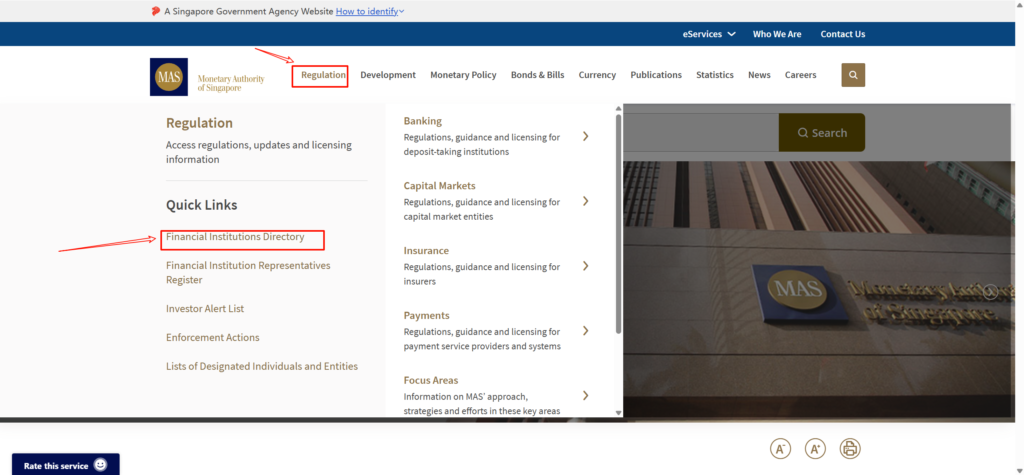 投资者及金融机构可通过 新加坡金融管理局(Monetary Authority of Singapore,MAS) 官方数据库查询企业的监管注册信息,以验证相关公司是否获得 MAS 授权或许可。