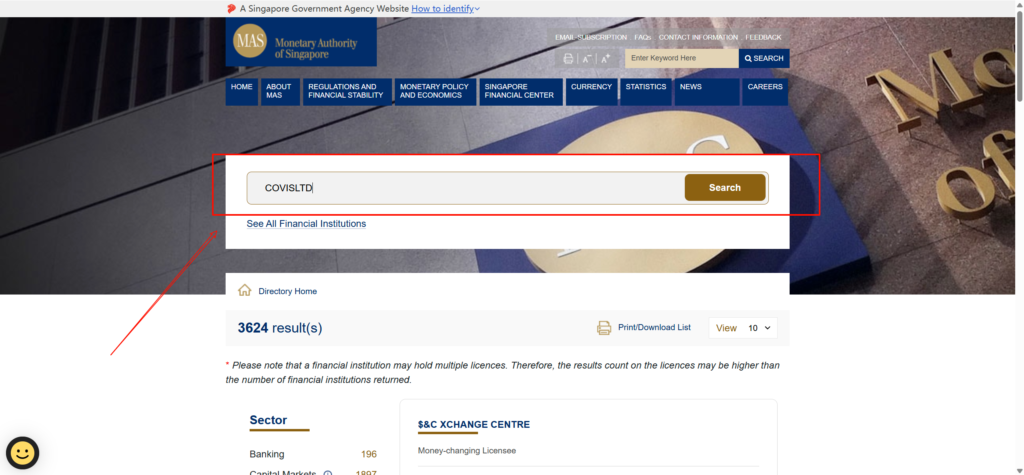 MAS 金融机构查询系统: