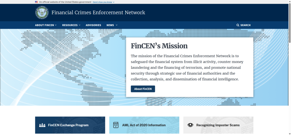 打开浏览器访问美国财政部金融犯罪执法网络(FinCEN)官方网站: