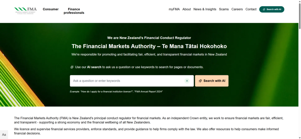 FMA 是新西兰主要金融监管机构,负责监管金融市场及持牌机构。