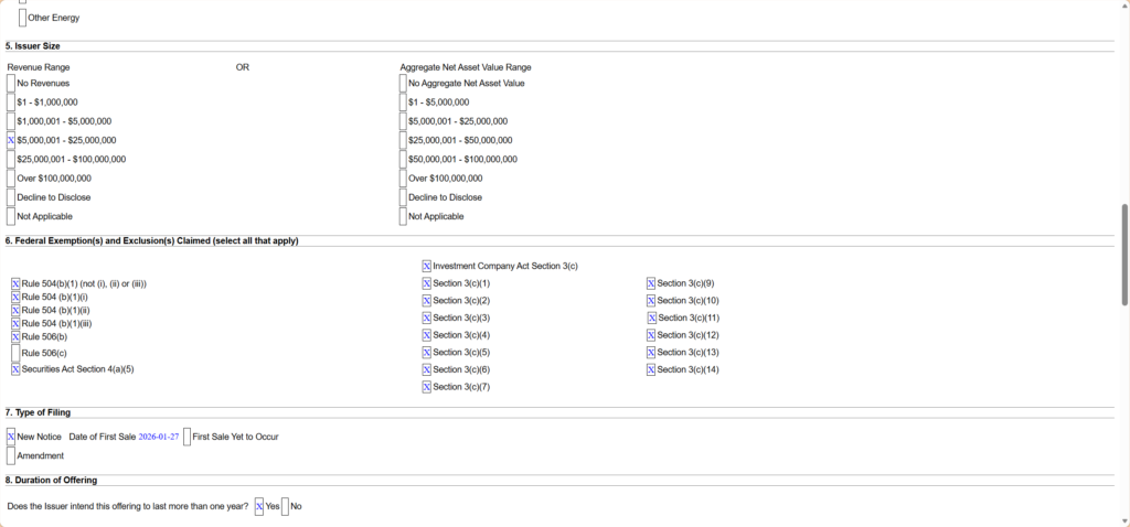该公司通过Regulation D私募发行路径进行融资,并纳入美国联邦证券信息披露体系,具备公开透明、可查询验证的特征。
