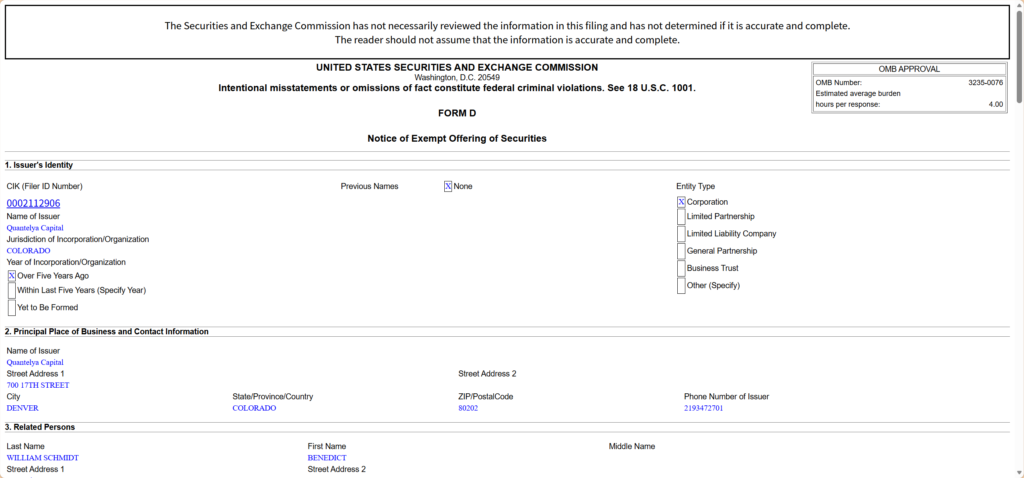 Quantelya Capital 的SEC备案体现: