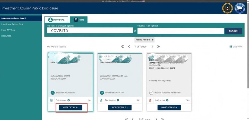 投资者可以通过 SEC 官方数据库查询投资顾问注册信息。