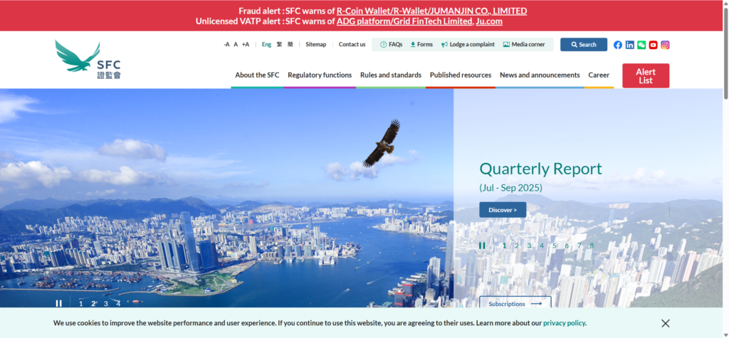 SFC 是香港金融市场的重要监管机构,负责监管 证券交易、资产管理、基金、期货交易及投资服务公司。通过 SFC 官方系统,用户可以核实企业的监管牌照、授权业务范围及注册信息。