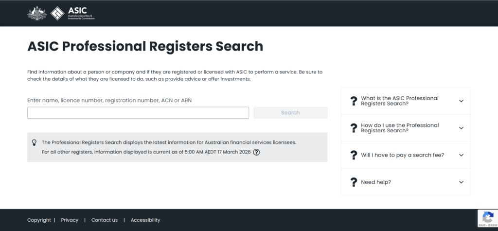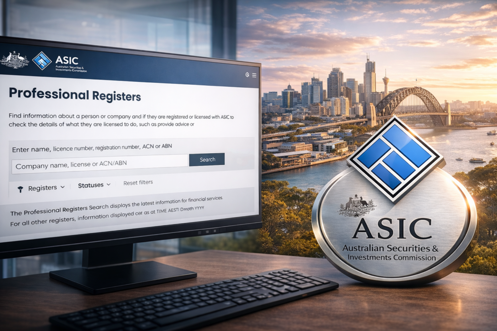 The Australian Securities and Investments Commission (ASIC) provides official databases that allow anyone to verify whether a company is properly licensed.