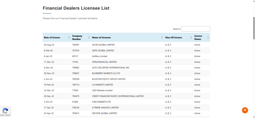 该页面提供所有获得 VFSC Financial Dealer License 的机构名单。